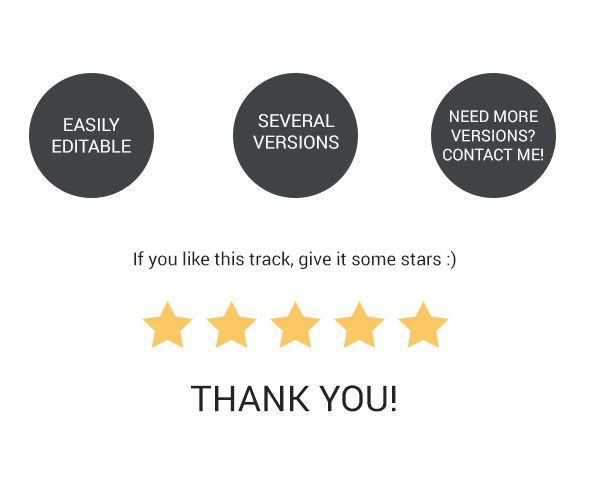 Featured instruments: optimistic overdriven guitars, atmospheric and beautiful lead guitars (optional), airy strings, powerful rhythmic drums, claps and percussion, rocky bass, confident piano, bright acoustic guitar.