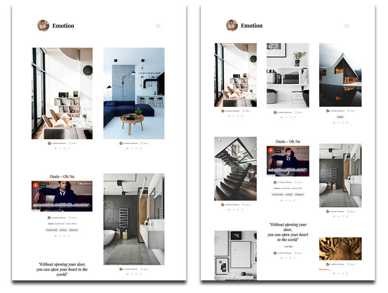 Emotion theme, chic and understated to a balanced extent that compliments your content without overshadowing. The Emotion theme was created with the idea that a great theme should look beautiful but never steal any shine from content, moreover, a great theme should play a major role in making your content stand out, look more beautiful and retain visitors attention… this is exactly what the Emotion theme was built to do.